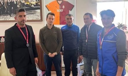 Atatürk’ü Anma Halk Koşusunda dereceye giren sporcular, Kaymakam tarafından makamında kabul edilerek ödüllendirildi.