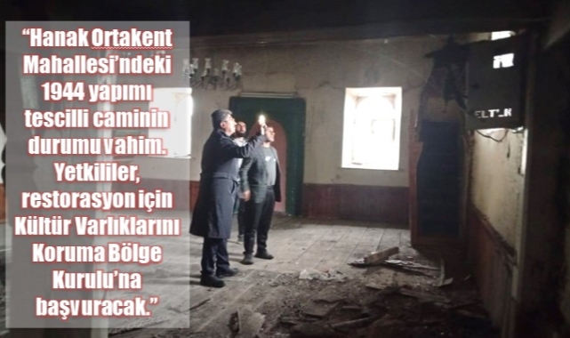 “Hanak Ortakent Mahallesi’ndeki 1944 yapımı tescilli caminin durumu vahim. Yetkililer, restorasyon için Kültür Varlıklarını Koruma Bölge Kurulu’na başvuracak.”