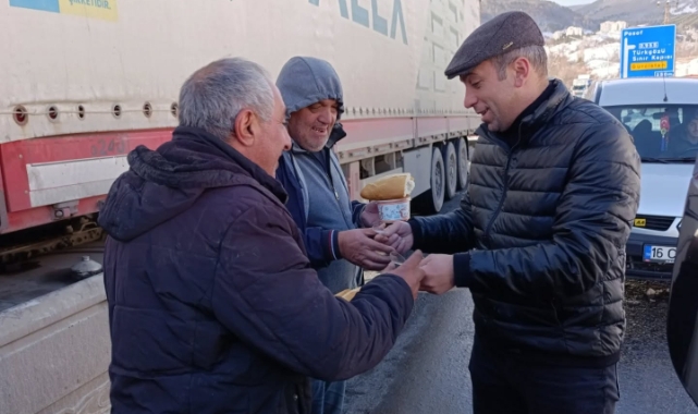 Yoğun kar yağışı nedeniyle ulaşıma kapanan Ilgar Dağı Geçidi’nde sahaya inen Posof Belediye Başkanı Erdem Demirci, yolda bekleyen tır şoförlerine sıcak çorba ikram etti.