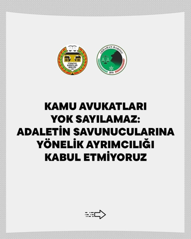 Ardahan Barosu, Türkiye genelinde 82 baronun imzasını taşıyan ortak açıklamayı paylaşarak, kamu avukatlarının seyyanen zam düzenlemesi dışında bırakılmasına sert tepki gösterdi.