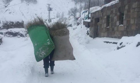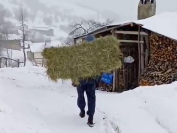 Bir dönem Kürt kelimesi için kullanılan karlarda, kart-kurt diyen adımlar atıp , tutmayan dizlerle zorla yürüyen bacakların taşıyan sırtına attığı bir tutam çuval ot ile tek geçim kaynağı olan hayvanına götürmek için bata çıka ahırına gitmeye çalışan bu Damal ve Arhavi’de bana gelen iki kare fotoğrafta ki insan gibi altı ay boyunca altında kalıp, yorulduğumuz kış hepimizi ağlatır..