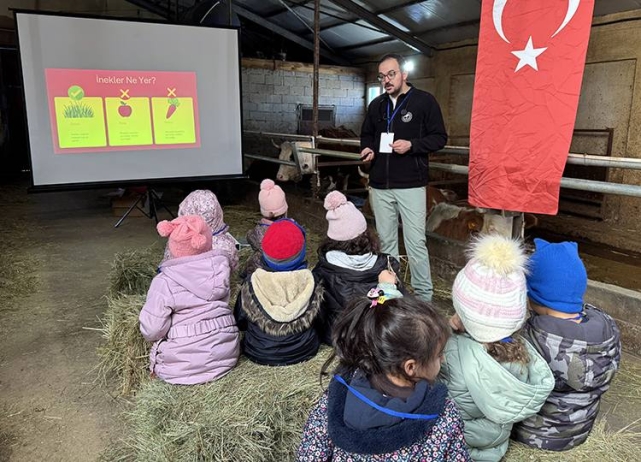 Veteriner hekimlerce, projeksiyon kullanılarak çocuklara görsel olarak da bilgi verildi. Çocuklar ayrıca yeni doğmuş buzağıları görme şansı buldu, tarımda kullanılan aletler hakkında da üreticilerce bilgilendirildi. Projeyle miniklerin hayvancılık ve tarım konularında bilgilendirmeyi amaçladıklarını anlatan Tarım Müdürlüğü Yetkilileri, şunları kaydetti: