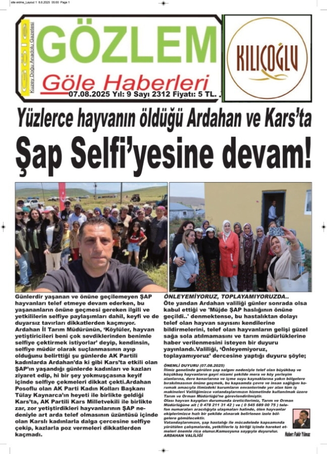 Ha unutmadan önce Şap’ın yassını tutan Kars’a ardından Ardahan’a gelen Posoflu kadın hemşerimin başkanı olduğu AK Parti Genel merkezinden bölgeye gelen kadınların şıklığını ve tarım müdürü gibi selfiye keyfin de gazetelerimizin manşetine olduğu gibi buraya da not düşmek gerek…