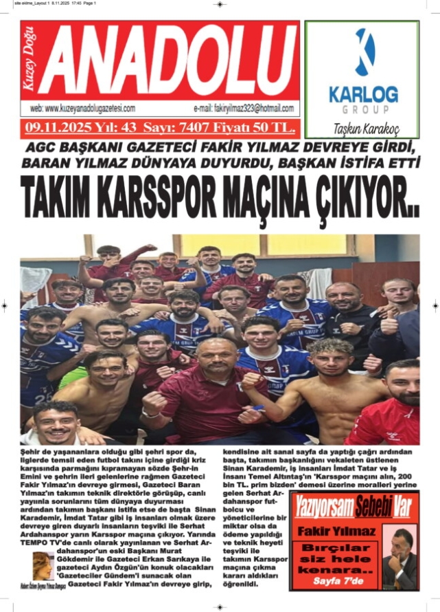 Benim gibi bir dönem Serhat Ardahanspor’un başkanlığını üstlenen Ardahanlı sanatçı Murat Gökdemir’in yanı sıra gazeteci meslektaşlarım, Siyasal Yaşam Gazetesi İmtiyaz Sahibi Erkan Sarıkaya ve Özgün Medya Haber Ajansı Yönetim Kurulu Başkanı, Mardinli Gazeteci Aydın Özgün’ün konuğum olacakları TEMPO TV’nin en çok izlenen tartışma programlarımdan olan ‘Gazetecilerle Gündem’ adlı programımızın bir yenisine hazırlanırken, Ardahan Kadın Futbol Takımı Başkanı Ümit Sarıkaya’nın Whatsapp’tan ve fecebookta ise Tarık Aksakal adlı onca hemşerimin içi serzeniş dolu mesajların da Serhat Ardahanspor bugün Karsspor ile yapacağı karşılaşmaya çıkmazsa alacağı ceza sonucu 3 yıl boyunca liglere katılamayacağını belirtiyordular.