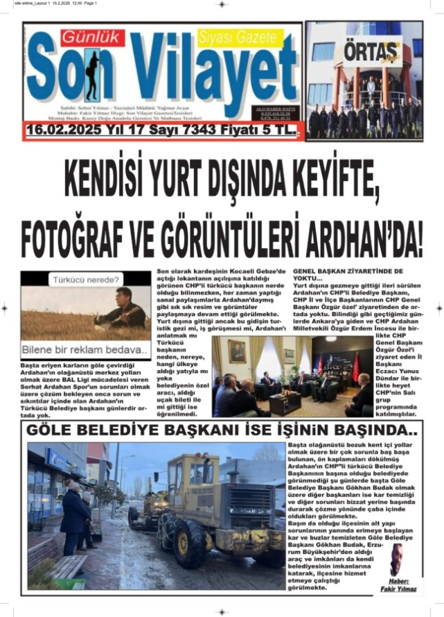 Çünkü, ‘KENDİSİ YURT DIŞINDA, FOTOĞRAF VE GÖRÜNTÜLERİ ARDAHAN’DA!’ başlıklı türkücü başkanla ilgili haberleri değil, her şeyi toz/pembe görmek isteyenlere var olanları yazıp, yorumlayıp, haber yapmamdan dolayı olduğunu söylesem sanırım çoğunuzun 36 yıldır kesintisiz yaptığım gazetecilikte gündeme taşıdığım haber ve yorumları bir kez daha hatırlayıp, okuyup, anlarsınız anlatmak istediğimi..