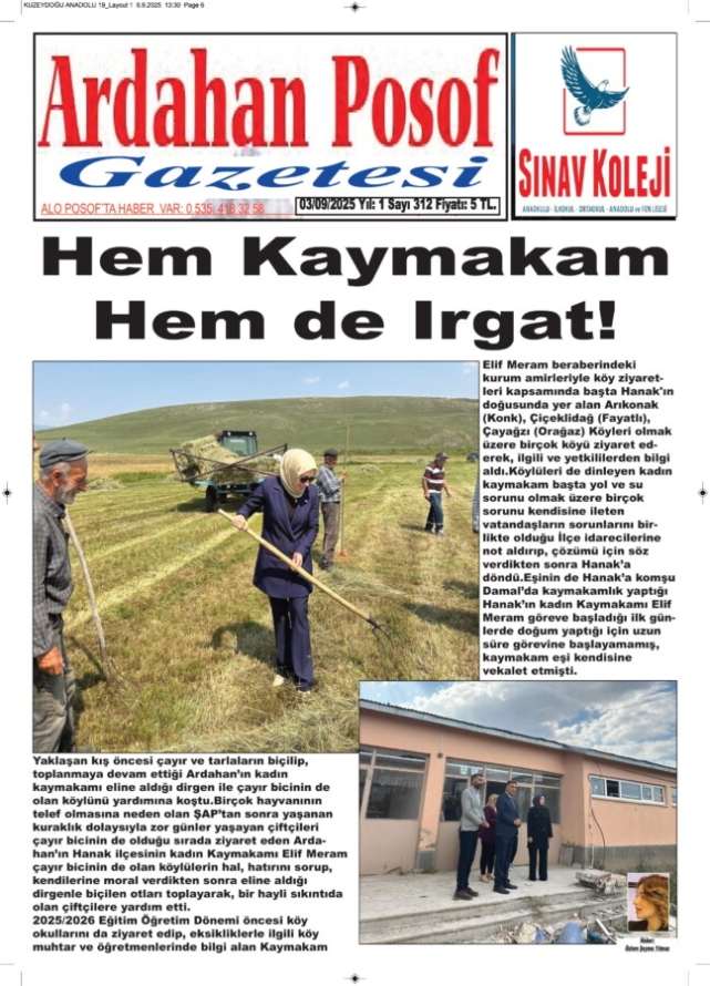 Ve başta, en son tarlada ziyaret ettiği köylülerle birlikte tırmık yaparken görüp, ‘Hem kaymakam, hem Irgat’ manşeti ile haberini yaptığımız Ardahan’ın Hanak ilçesinin kadın kaymakamının görev alanında bulunan Yamaçyolu (Vardosani) köyü olmak üzere bozuk ve yarım yamalak yapılan köy ve kent içi yollarının yanında çoğu kapalı köy okulları ziyareti ardında dönüp ilçede yaya gezdiği sırada  yapılan kaldırımların toz çıkarmasına kızıp, tepki gösterirken kendisinden istenen  telefon görüşmelerine ‘telefonda konuşmuyorum İsterlerse randevu alıp, gelsinler’ diyerek başta iktidarın siyasilerine olmak üzere kimseyle konuşmak istemesi de bu yöndeki ‘Ardahan Valiliğinin emrinde bulunan tüm kamu kurumlarına Sus, konuşma, randevu verme sıkıyönetimi’ tespitimizi doğrular gibi idi..