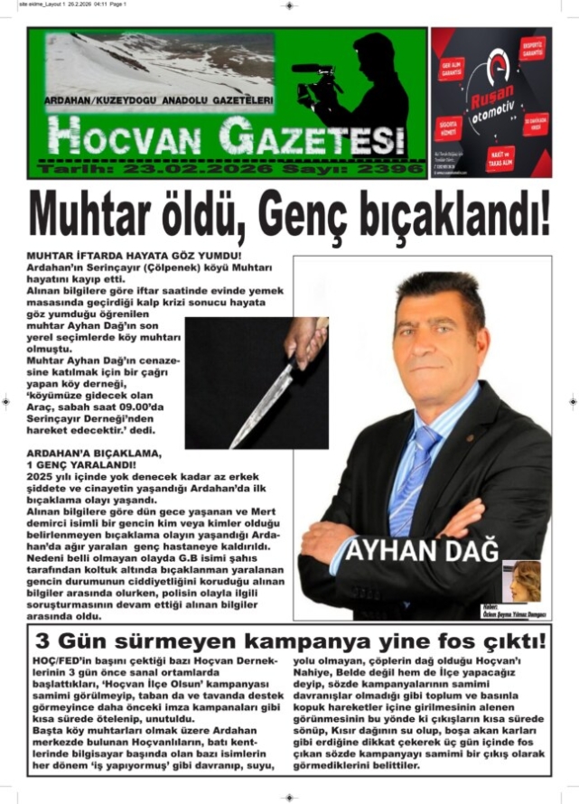 Ve bunların içinde en ağır haberler ise alınan son dakika yada valinin nedense cenazesine katılmadığı Göle Serinçayır yani eskiyip, özelinde çekip, gidip, çöp olanları hatırlatan Çölpenek köyü muhtarının ani ölüm haberleri gibi onca son dakika ve kara haber..