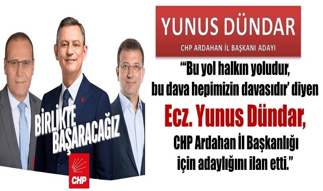 Cumhuriyet Halk Partisi Ardahan İl Başkanlığı için adaylığını açıklayan Yunus Dündar, örgüt içinde birlik, dayanışma ve yenilenme çağrısı yaptı.